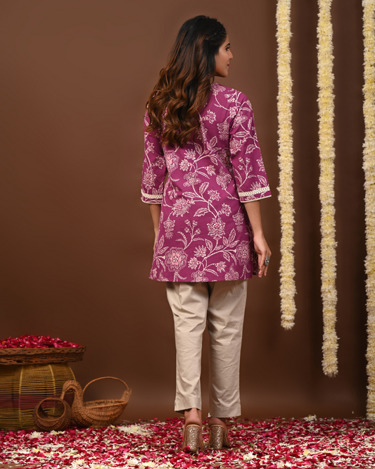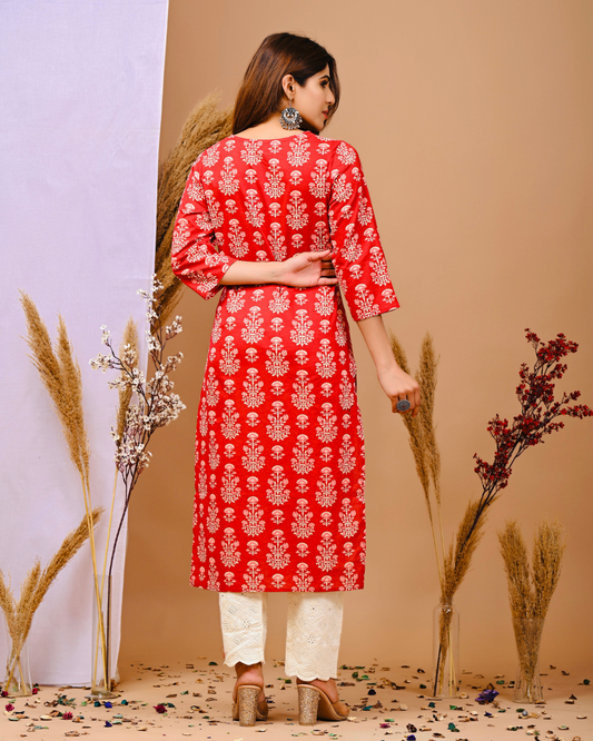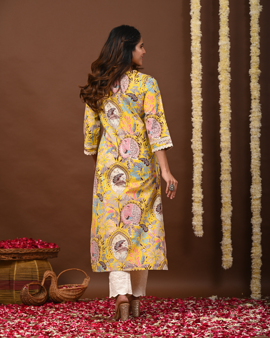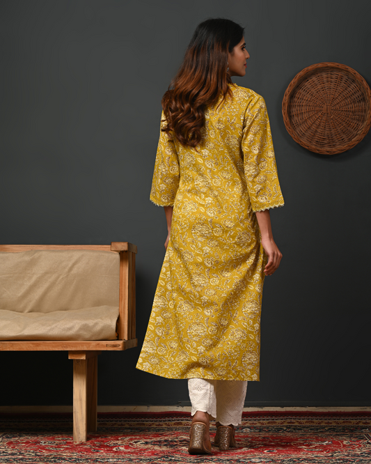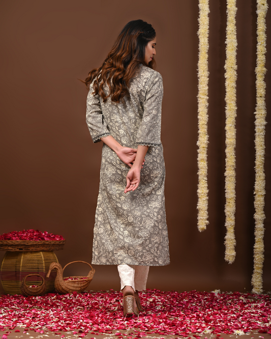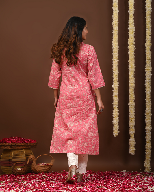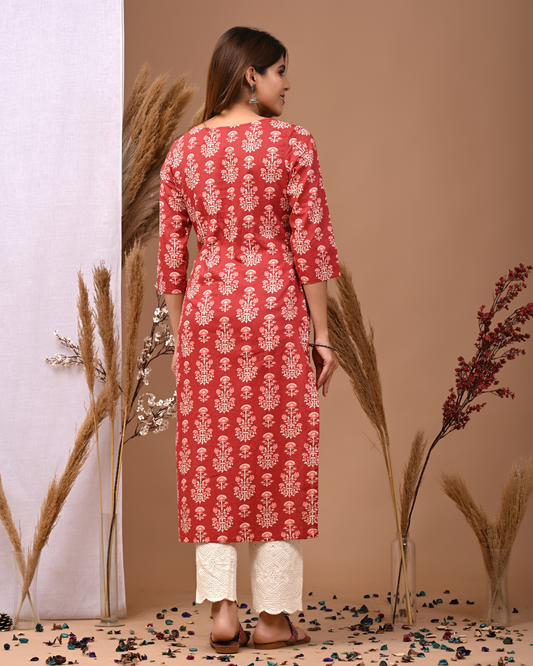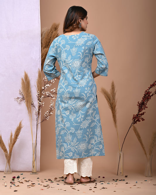 Floral Printed Notch Neck Pure Cotton Straight Kurta