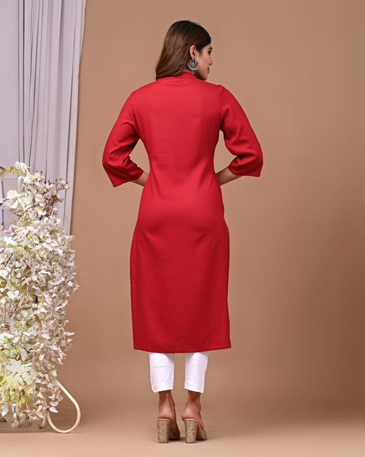 RimeLine Aqua Embroidered Printed V-Neck Kurti for women