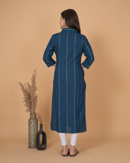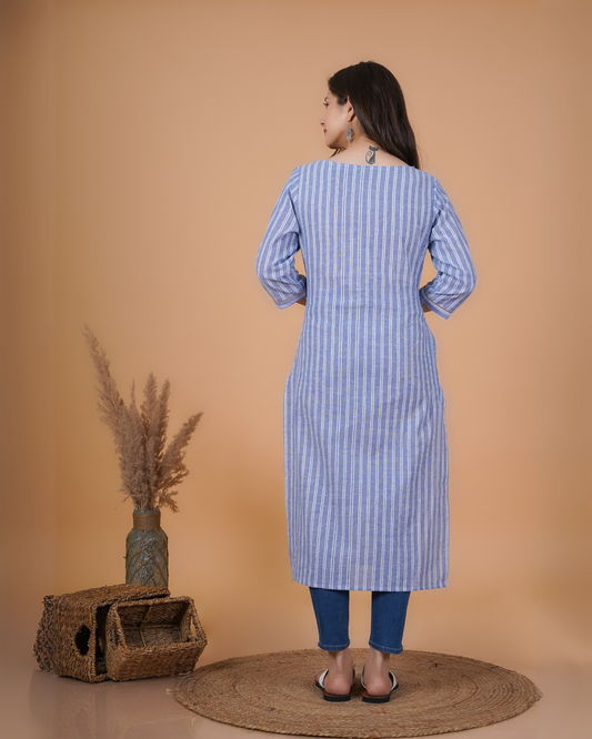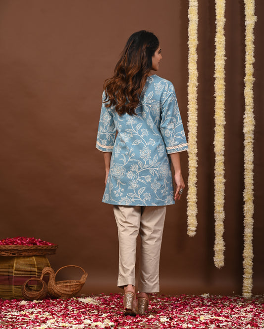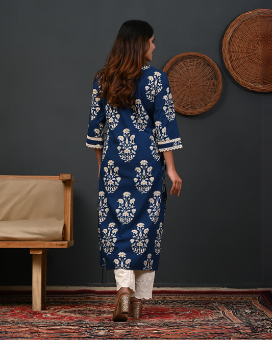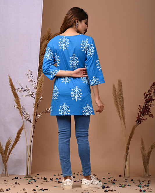 RimeLine Blue Ethnic Motifs Printed Round-Neck Cotton Kurti