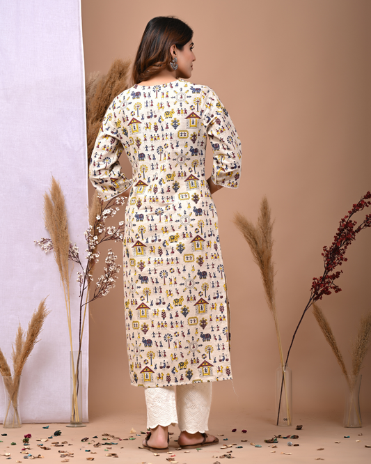 Ethnic Motifs Printed Pure Cotton Straight Kurta