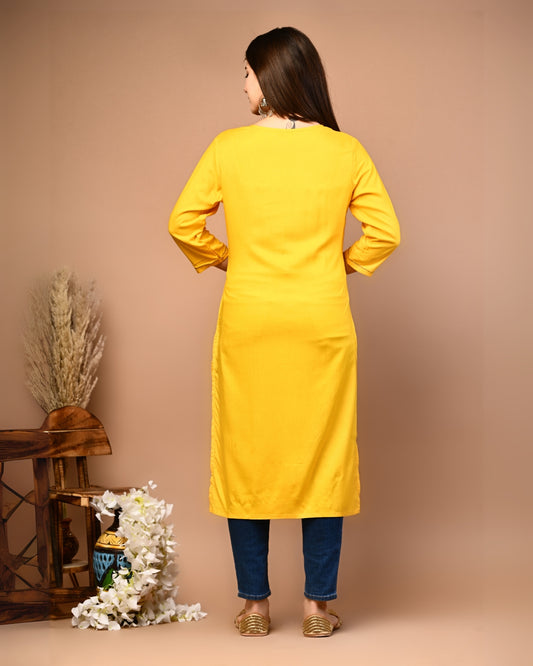 RimeLine Floral Printed Notch-Neck Straight Kurta