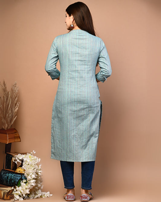 RimeLine Aqua Women Ethnic Motifs Printed Round-Neck Pure Cotton Kurti
