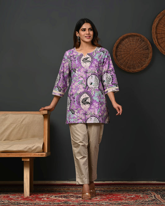 Floral Printed Notch Neck Pure Cotton Straight Kurta