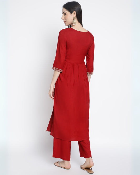 RimeLine Ethnic motifs yoke design Kurta pant set for Women