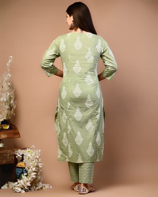 Rimeline Ethnic Motifs Printed A-Line Pure Cotton Kurta with Trousers