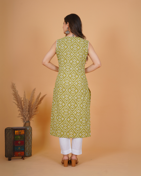 RimeLine Ethnic motifs printed Round neck Green Straight Kurta for Women