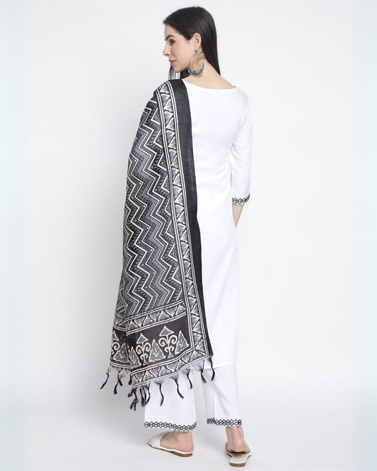 Rimeline Ethnic Motifs Printed V-Neck Pure Cotton Kurta With Trousers & Dupatta