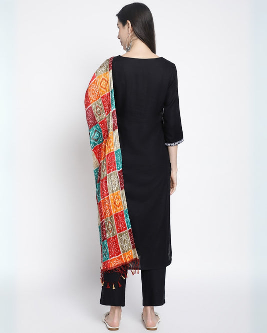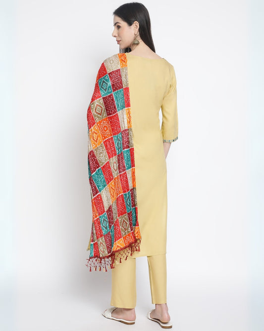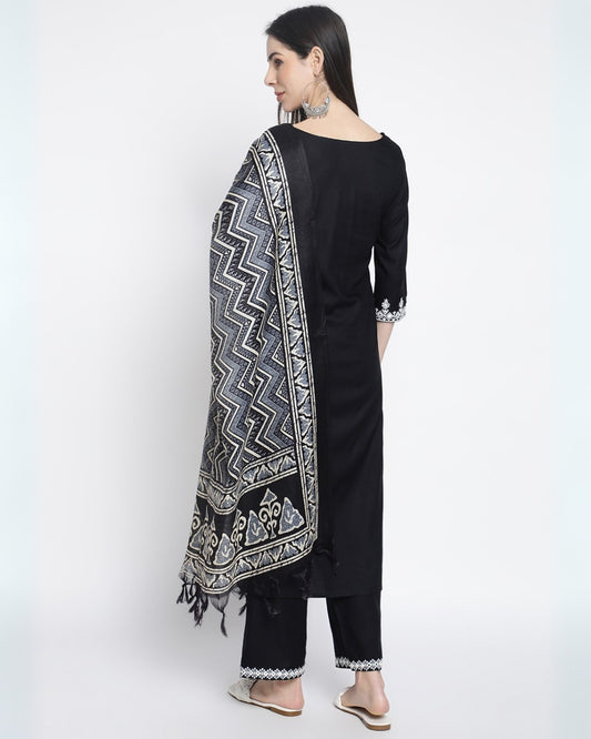 RimeLine Floral embroidered Straight shape Regular 3 pcs kurta dupatta pant set for women