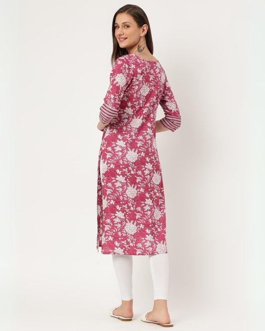 Anouk Rustic Floral Printed V-Neck Pure Cotton Straight Kurta