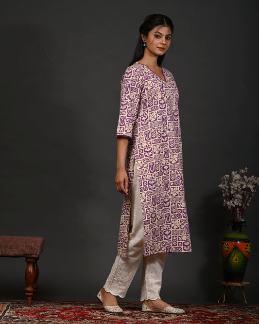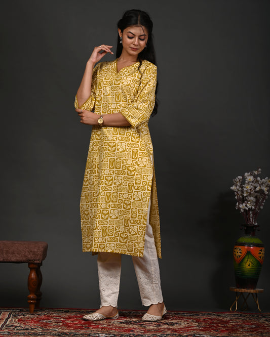 Rimeline Women Ethnic Motifs Printed Fusion Cotton Straight Kurta