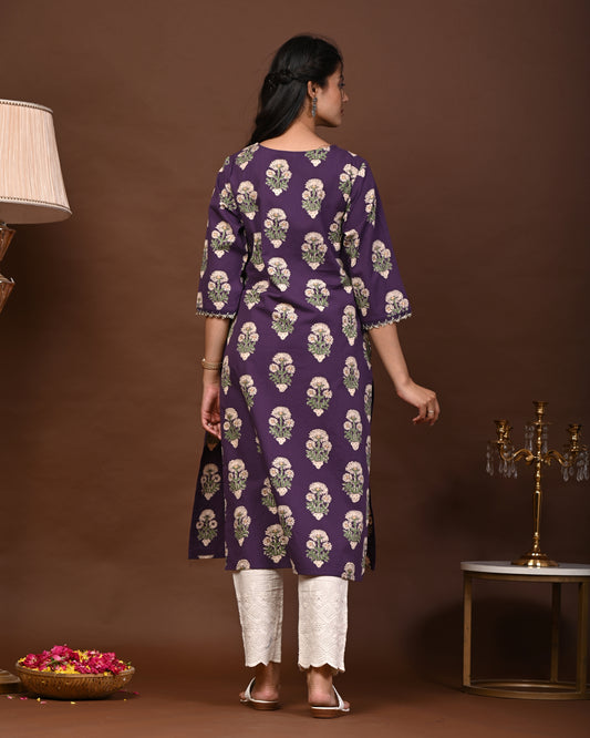 Rimeline Women Floral Daily Pure Cotton Straight Kurta