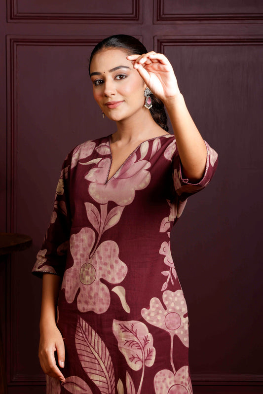 Rimeline Women Floral Printed Festive Cotton Straight Kurta
