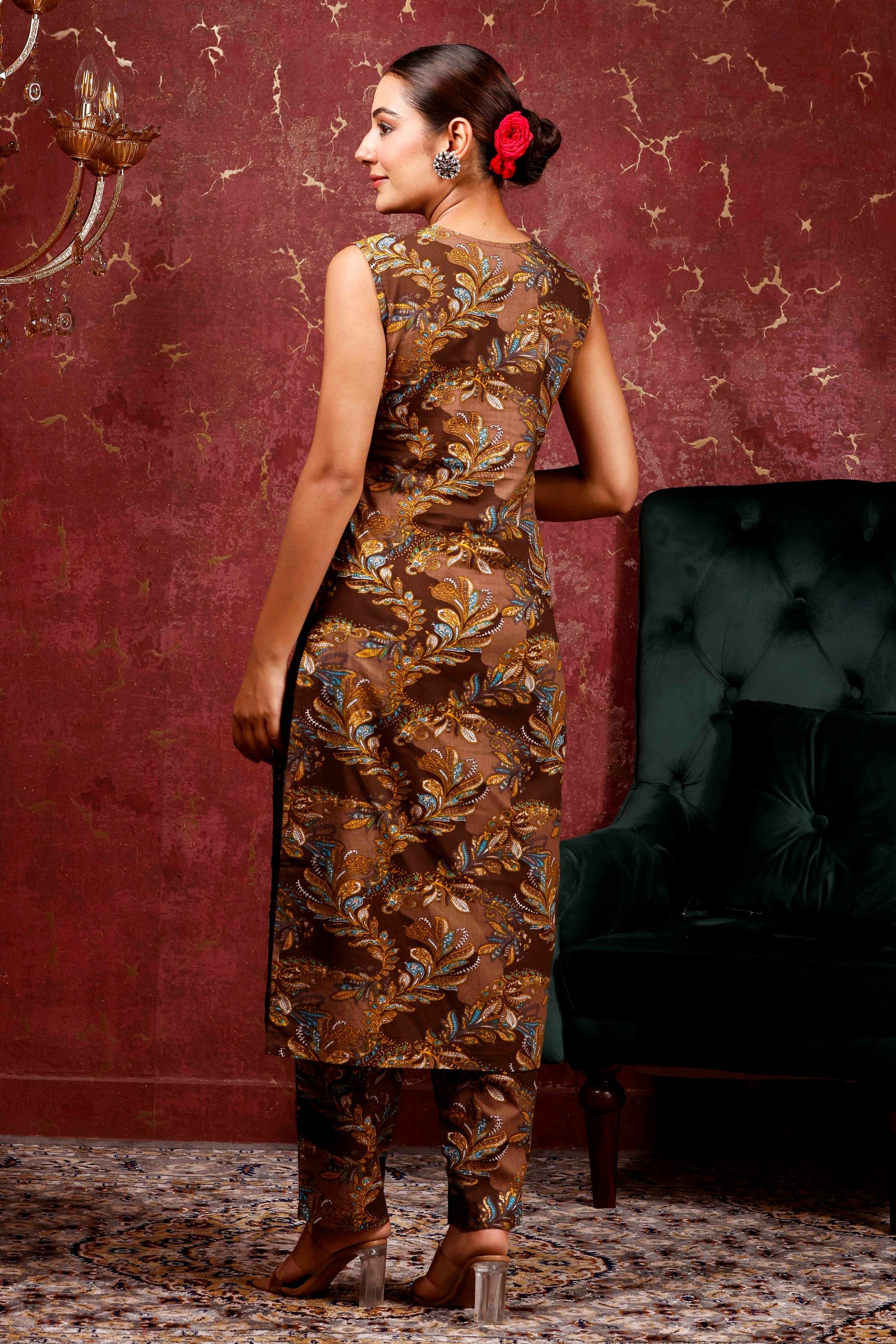 Rimeline Ethnic Motifs Printed V-Neck Pure Cotton Kurta With Trousers & Dupatta
