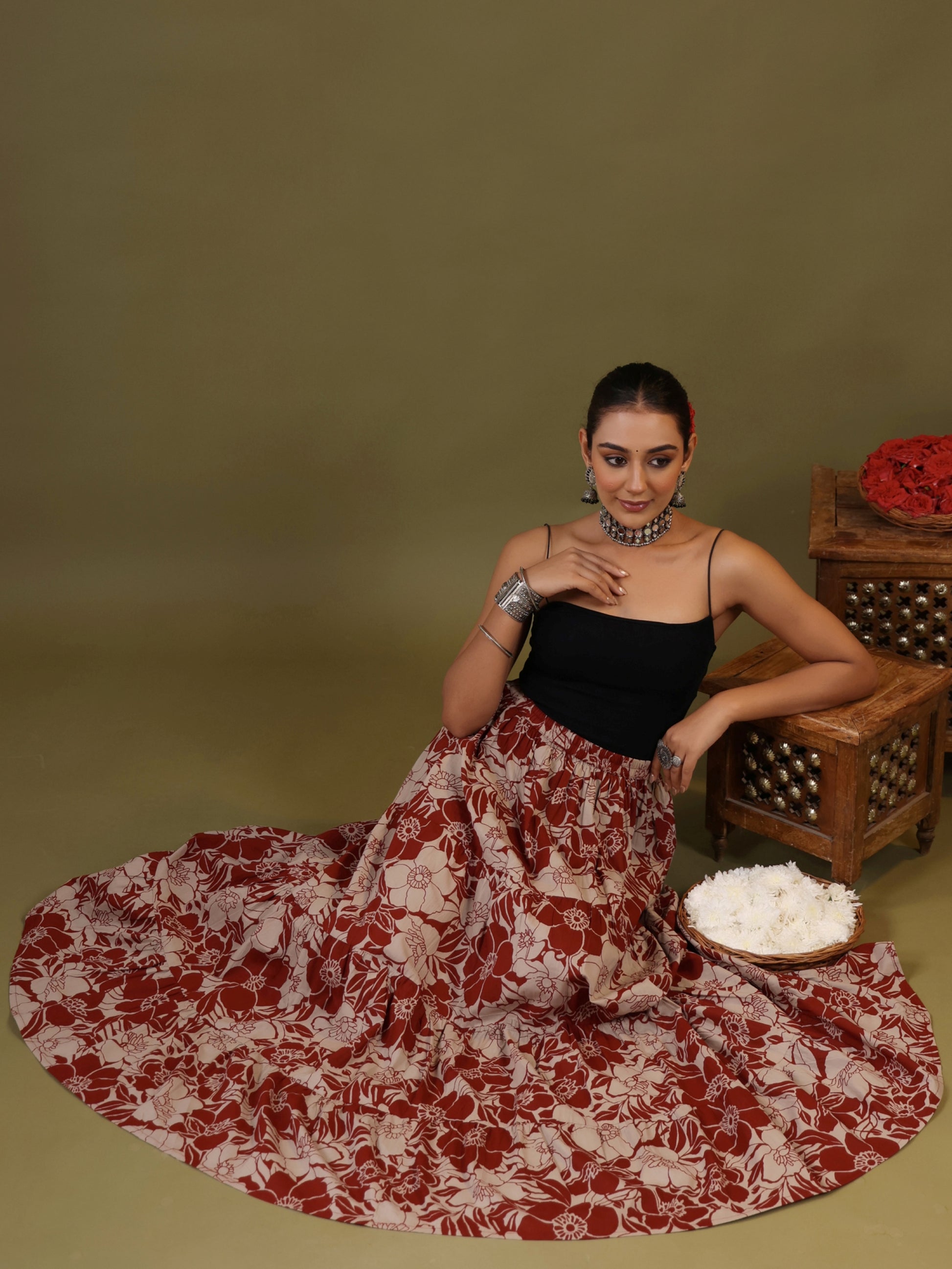 Rimeline Floral Printed Pure Cotton Flared Maxi Skirt