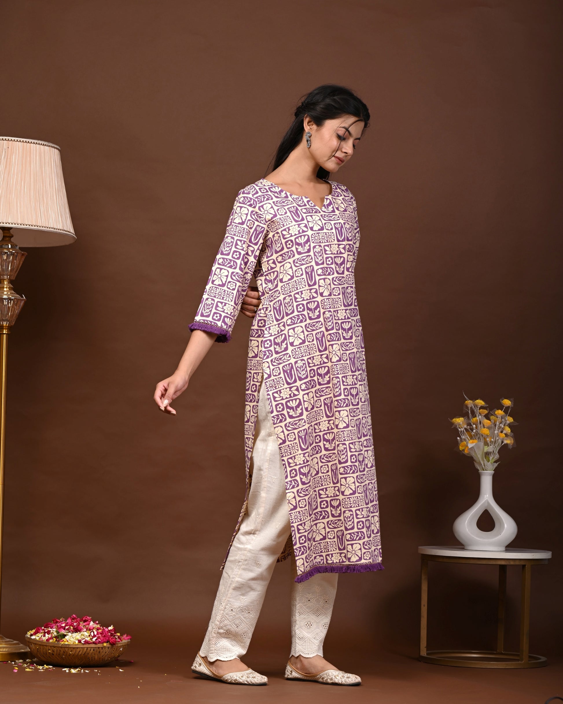 Rimeline Floral Screen Printed Notch Neck Pure Cotton Straight Kurta