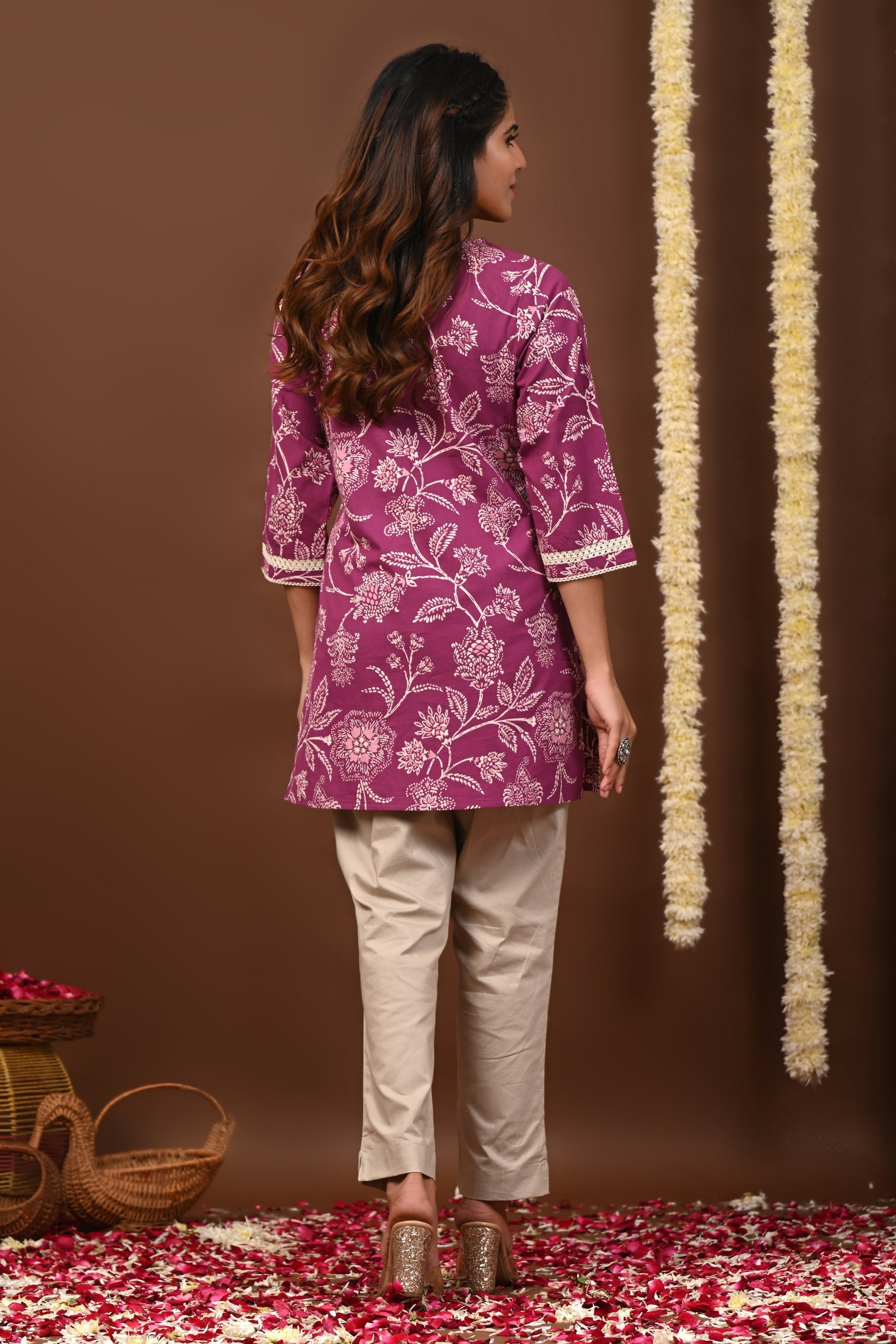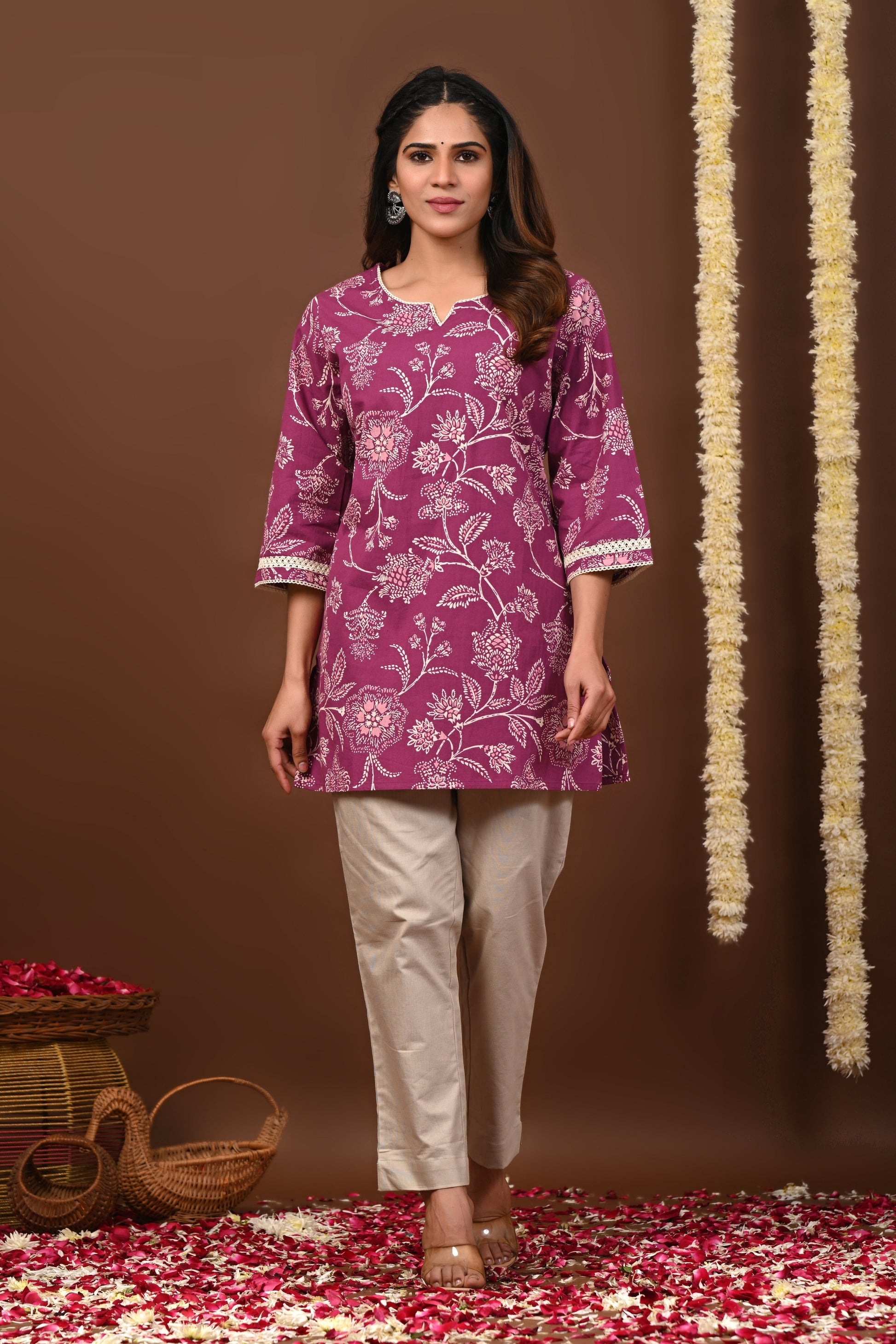 - Purple and White Straight Kurti