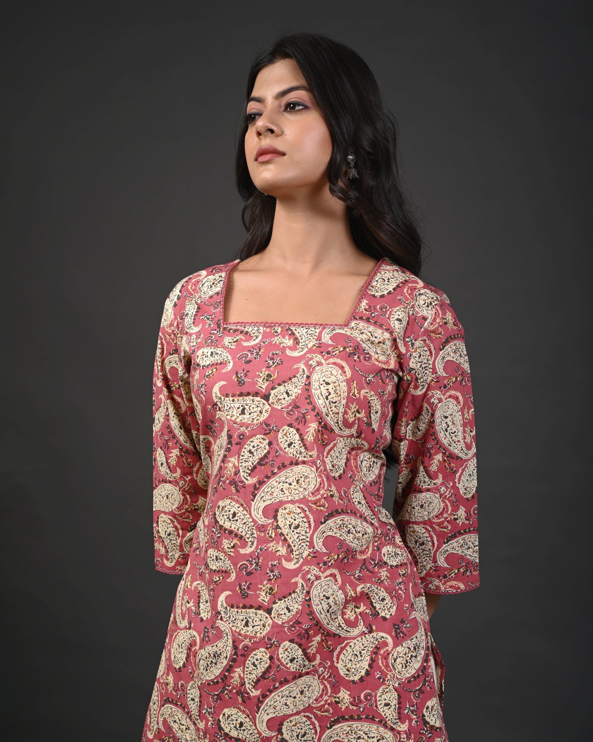 Rimeline Paisley Screen Printed Square Neck Pure Cotton Straight Kurta