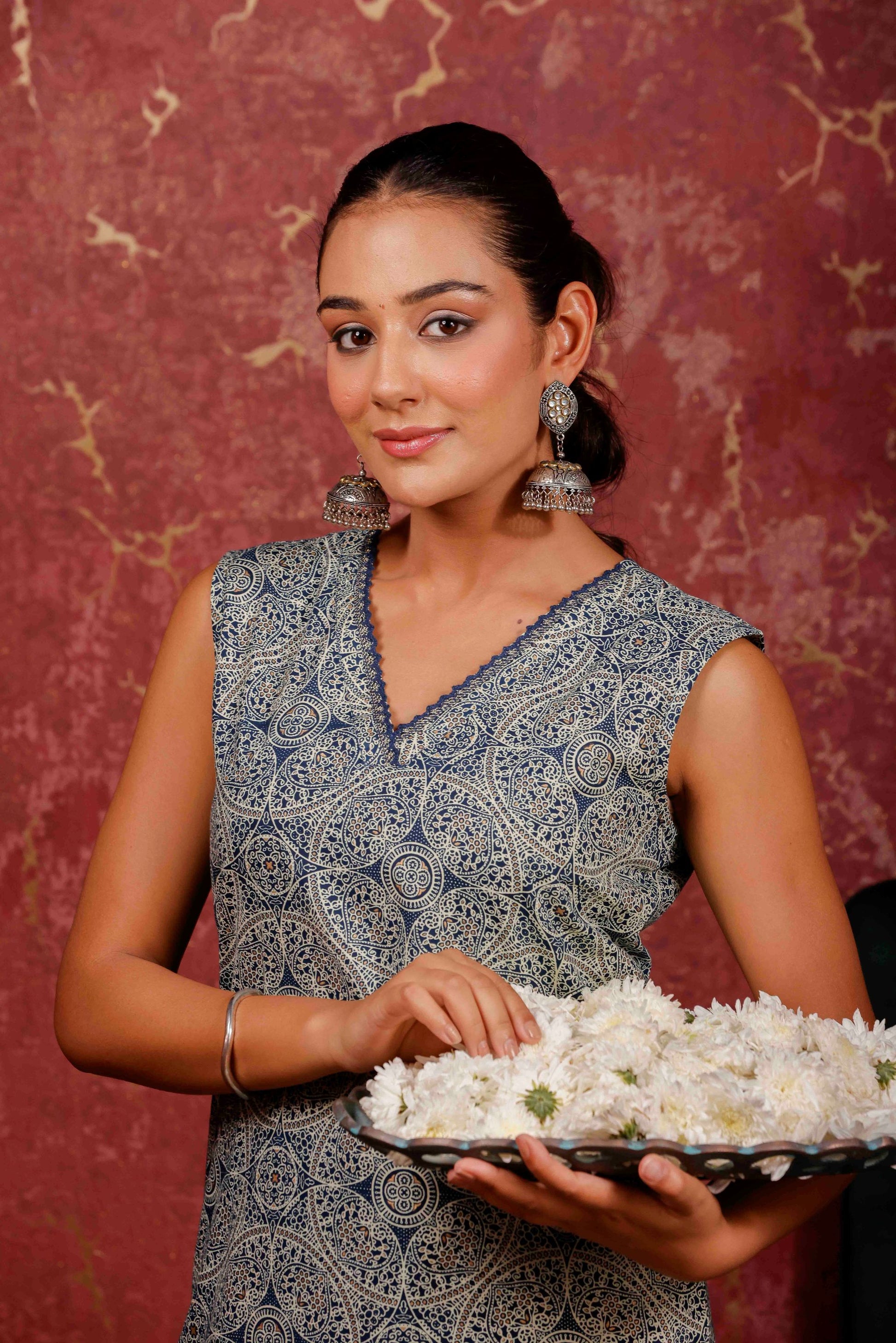 Rimeline Women Ethnic Motifs Printed Cotton Kurta with Trousers