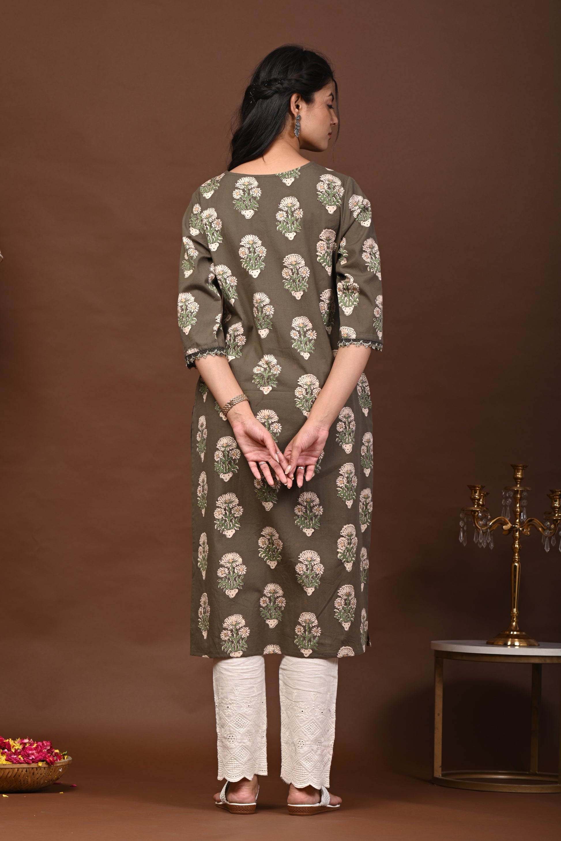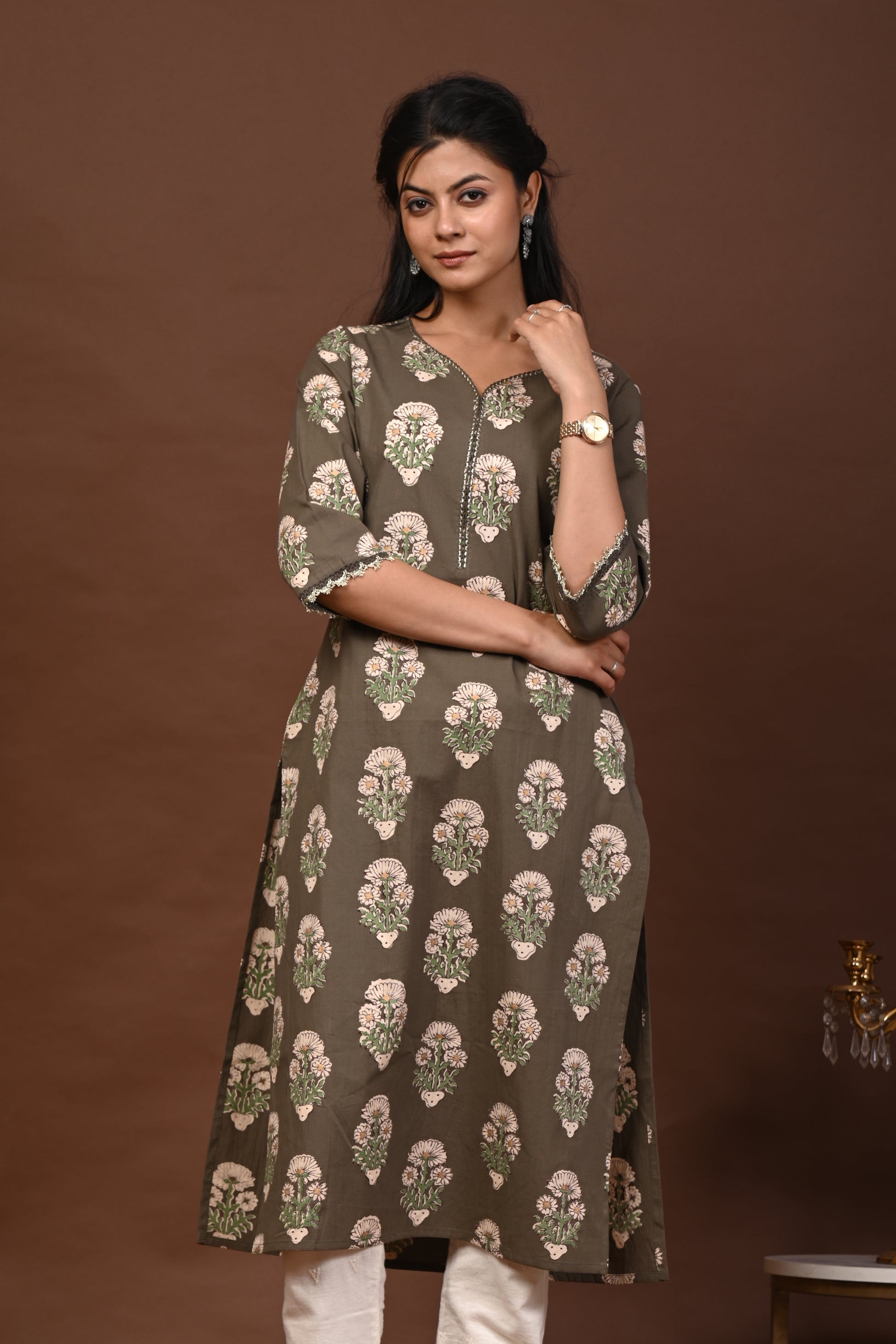 Grey & White Straight kurta for Women