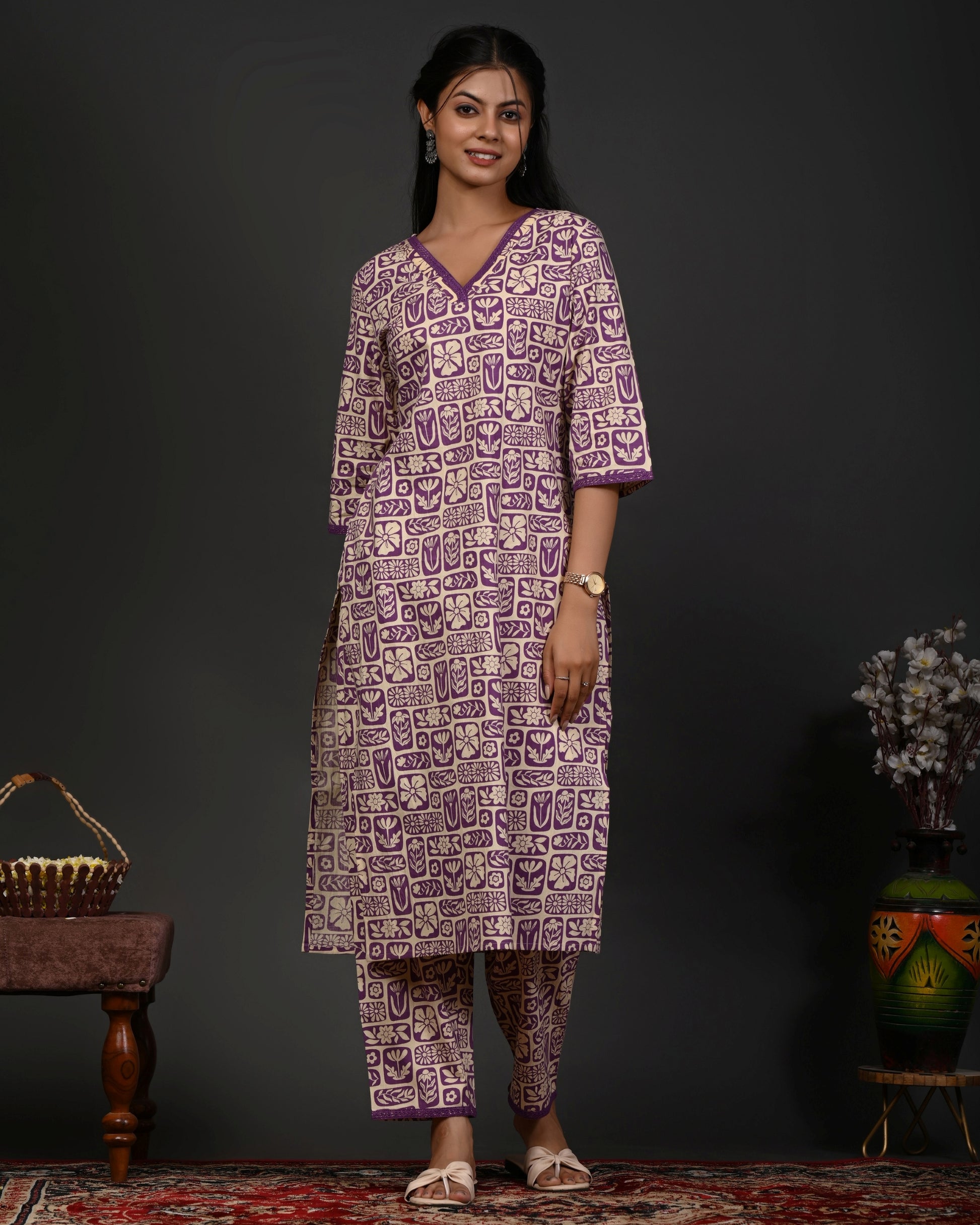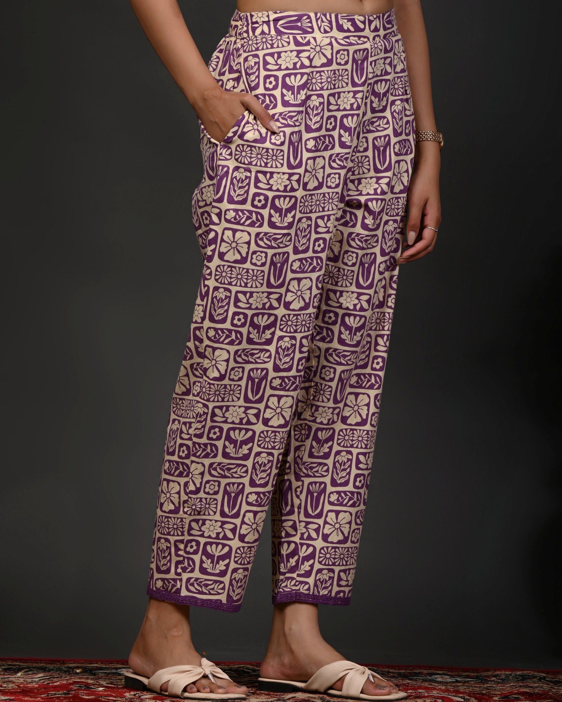 Rimeline Women Floral Printed Regular Pure Cotton Kurta with Trousers