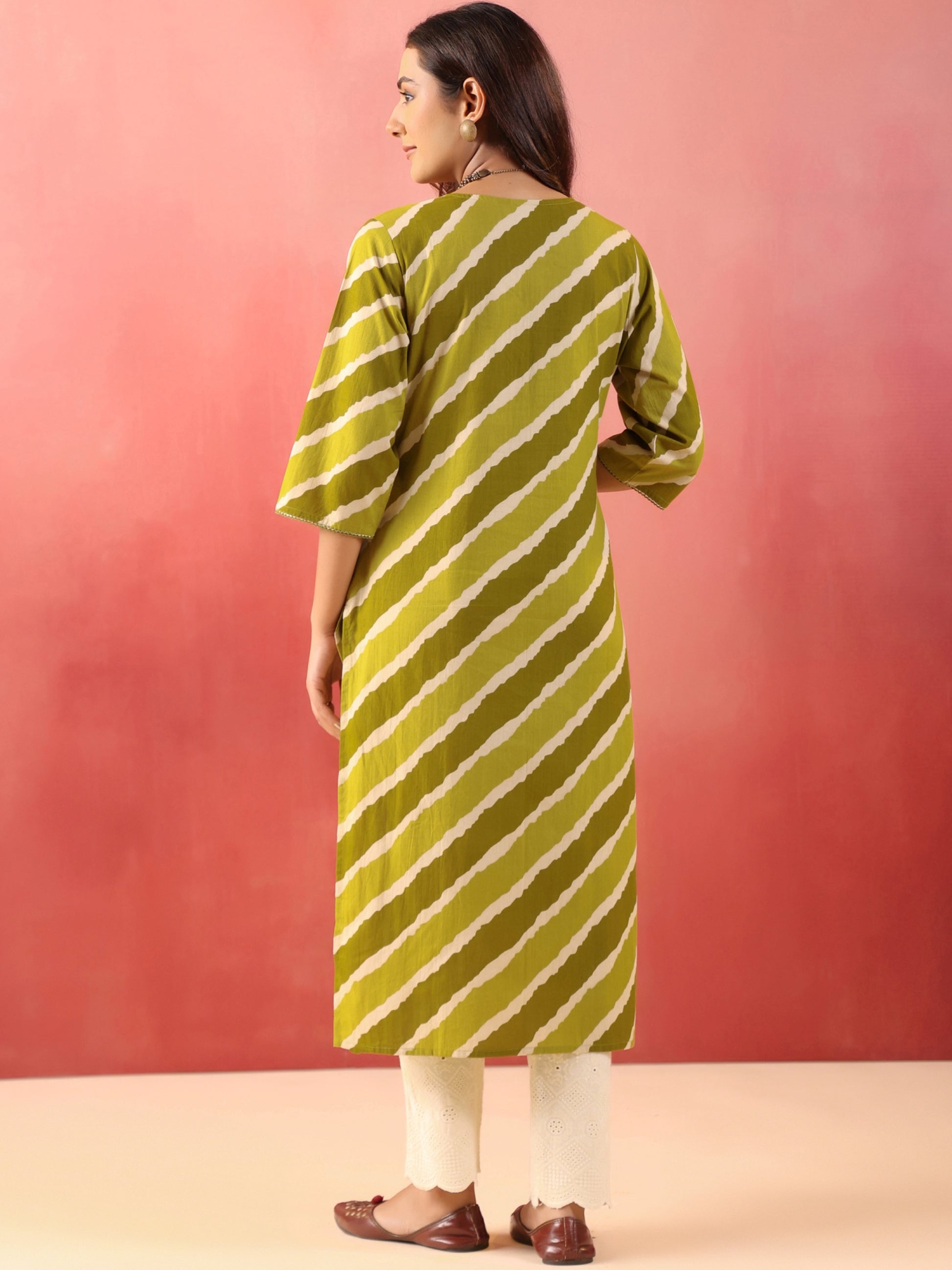 Rimeline Women Leheriya Printed V-Neck Sequinned Straight Cotton Kurta
